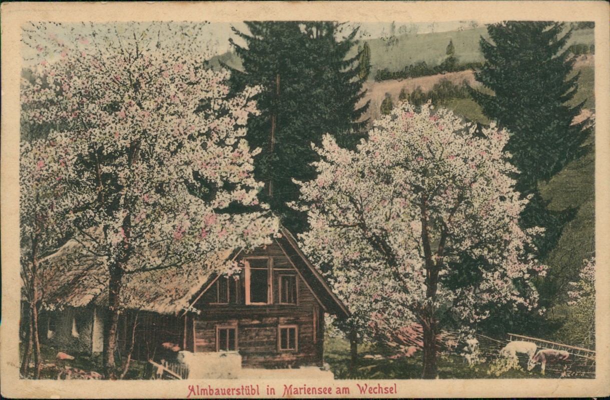 Postcart: Almbauerstübl Baumblüte - Mariensee am Wechsel