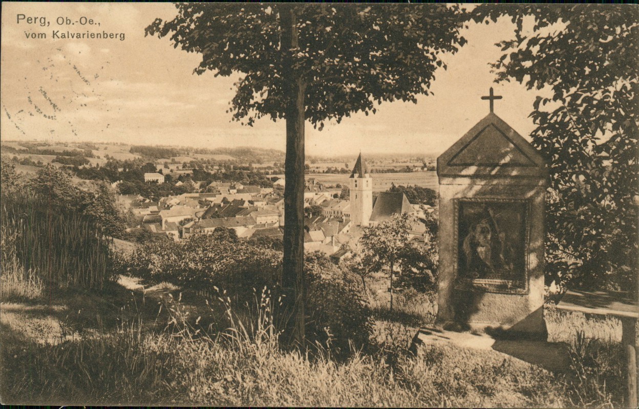 Postcart: Stadt vom Kalvarienberg - Perg Oberösterreich