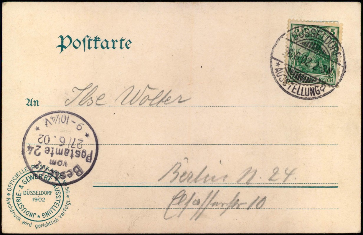Postcart: Ausstellung Maschinenhalle - feine Damen - Düsseldorf