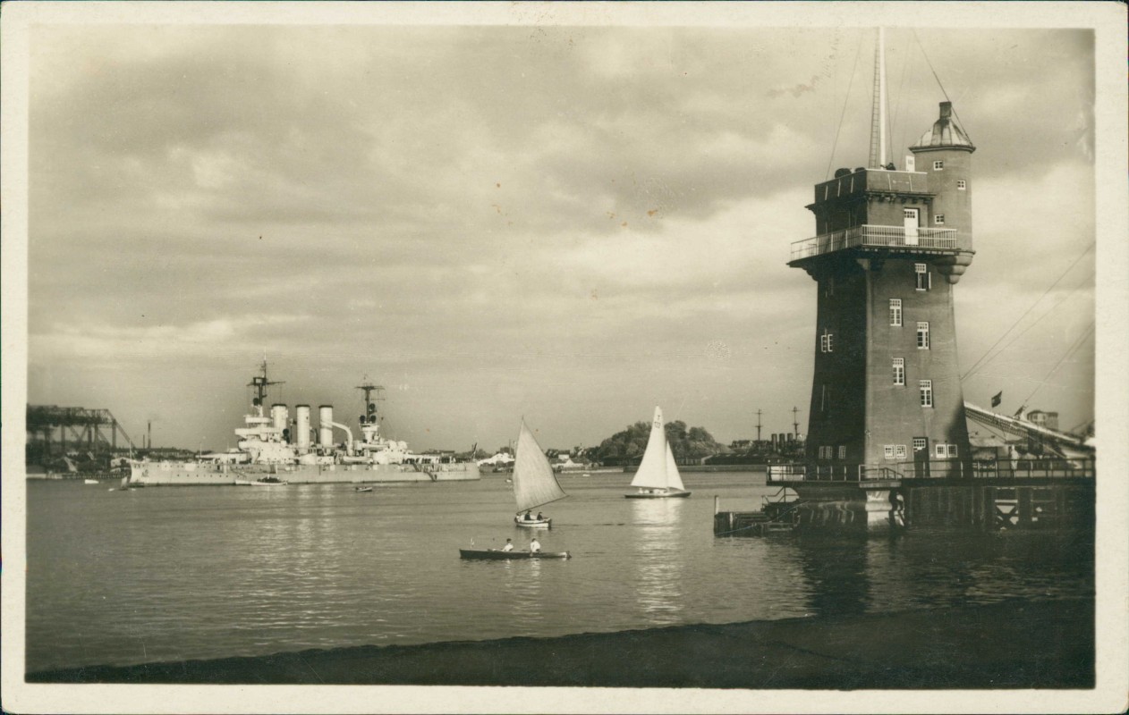 - Am Signalturm - Kriegsschiff - Fotokarte