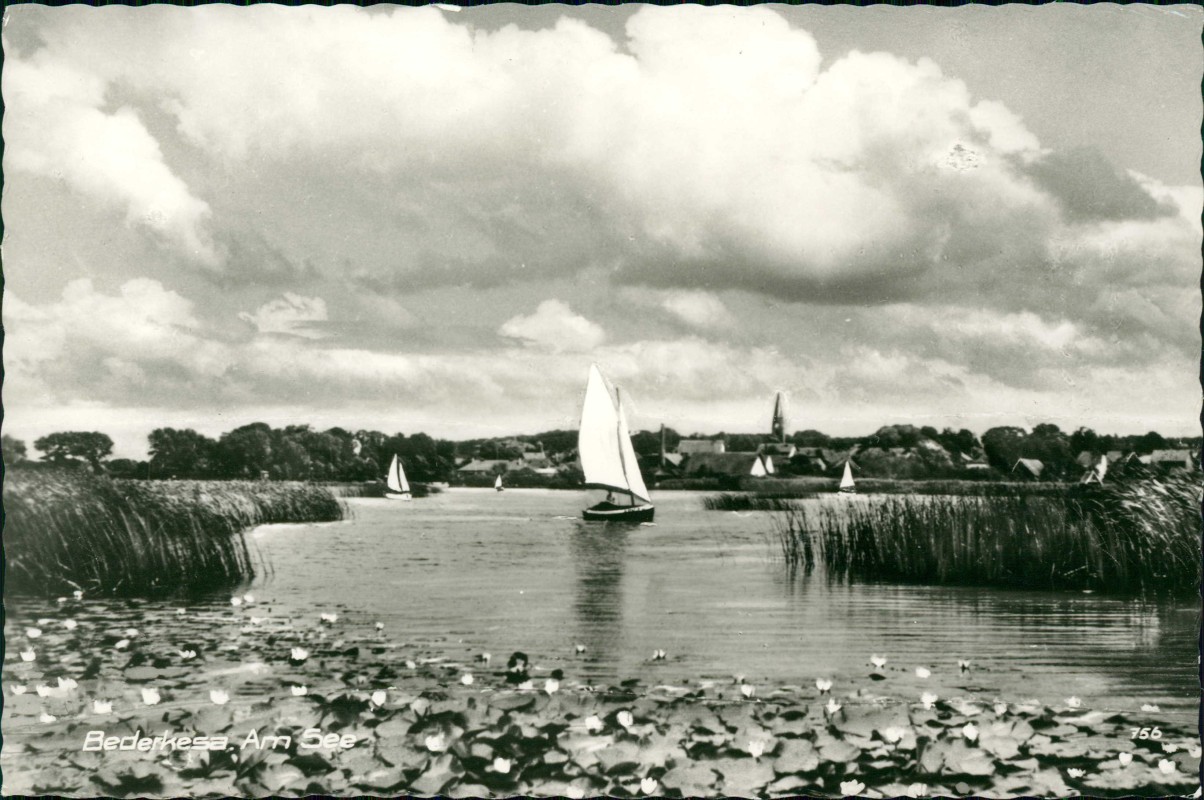Postcart: Stadt Seerosen Segelboote - Bad Bederkesa