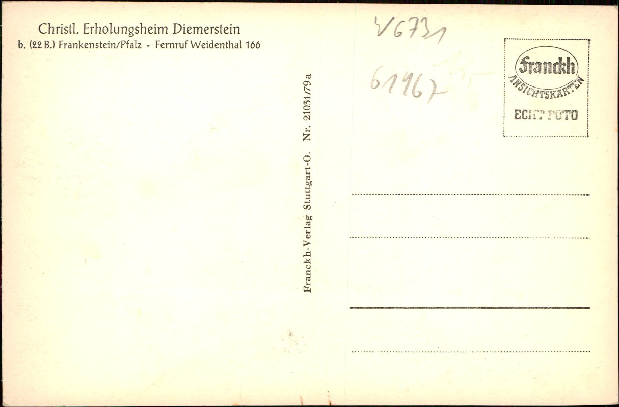 Postcart: Christl. Erholungsheim - Diemerstein