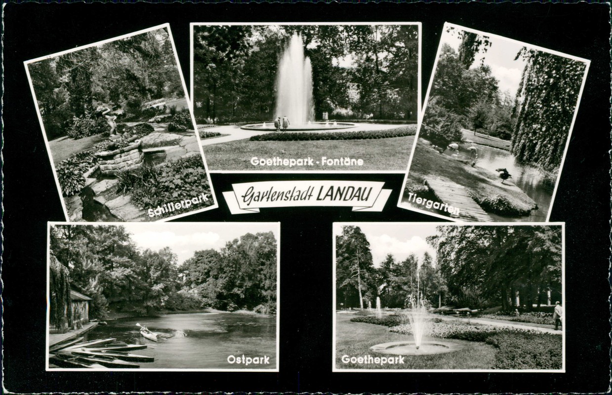 Postcart: MB: Schillerpark Goethepark - Fontäne Tiergarten - Landau in der Pfalz