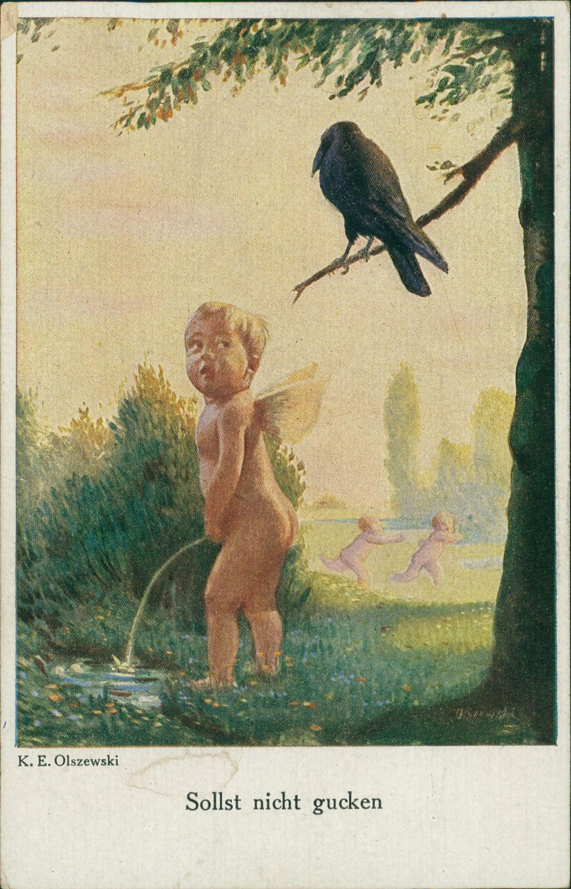 Postcart: Künstlerkarte Kunstwerk K. E. Olszewski Sollst nicht gucken Engel
