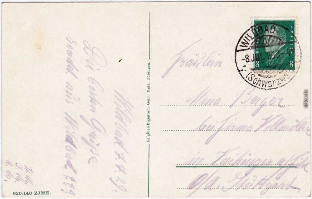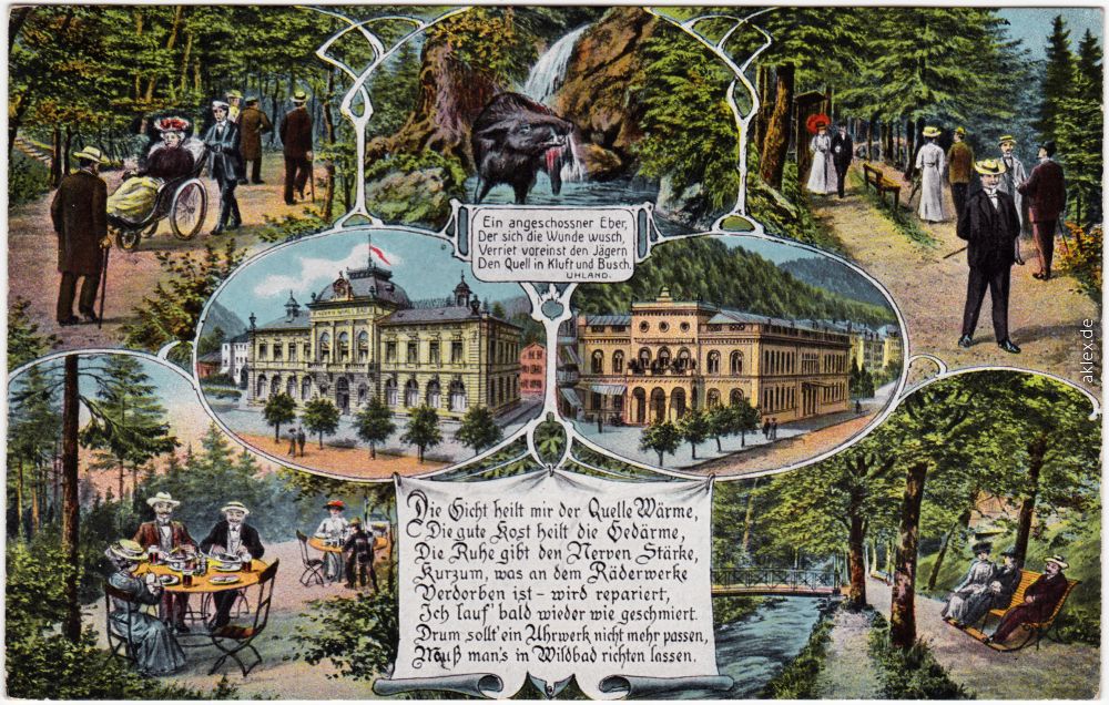 Postcart: Mehrbild: Gebäude und Jagd - Bad Wildbad