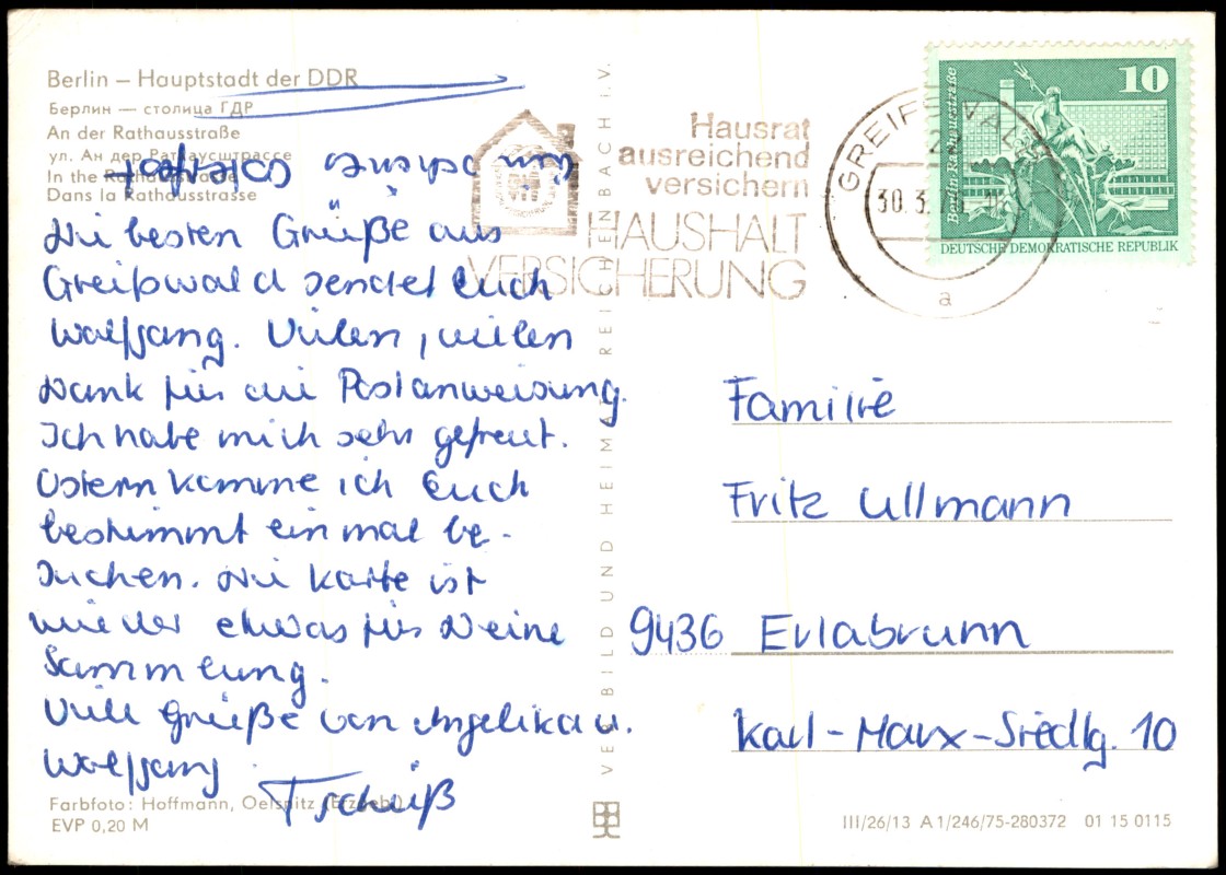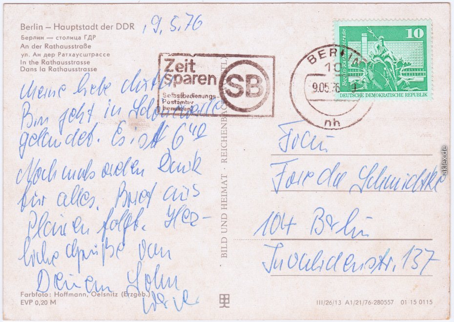 vintage Postcard from 1976: Rathausstrasse, belebt:: Mitte-Berlin Address side Detail image Detail image