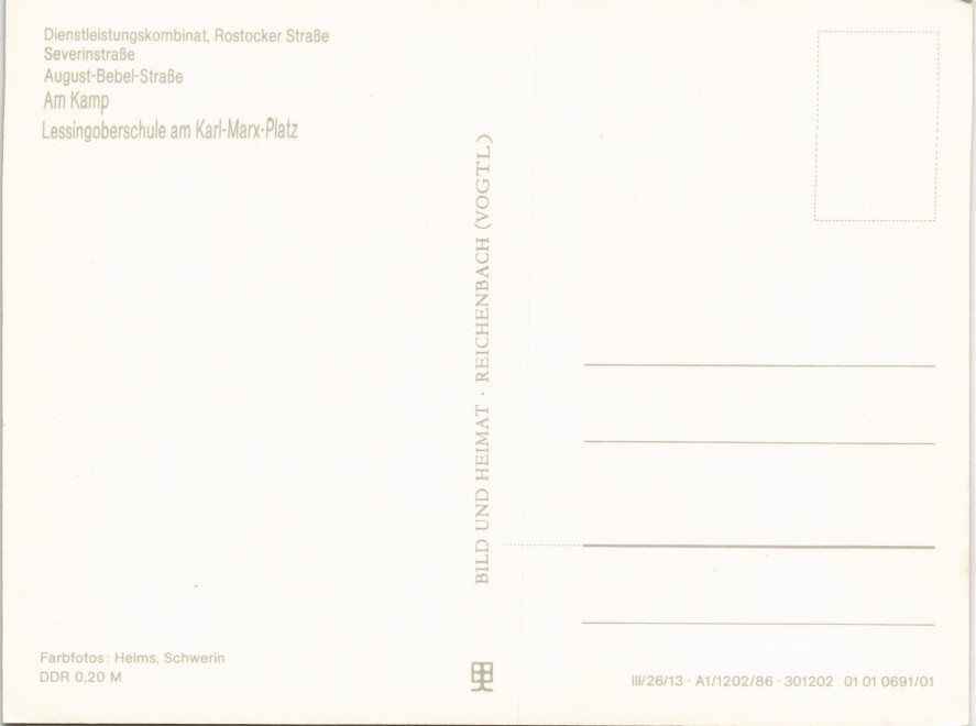 - Dienstleistungskombinat - Rostocker Straße, Severinstraße, August-Bebel-Straße, Am Kamp, Lessinggoberschule am Karl-Marx-Platz