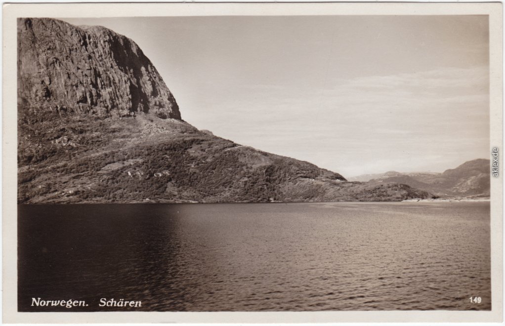 Photo Card: Blick zu einer Schäre ( kleine Felsige insel die in der Eiszeit entstand) - Norwegen im Fjord