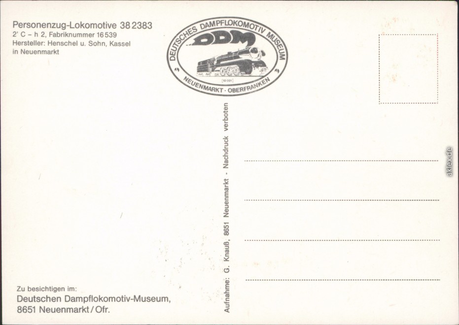 Postcart: Personenzug-Lokomotive - Typ: 38 2383, Hersteller: Henschel u. Sohn