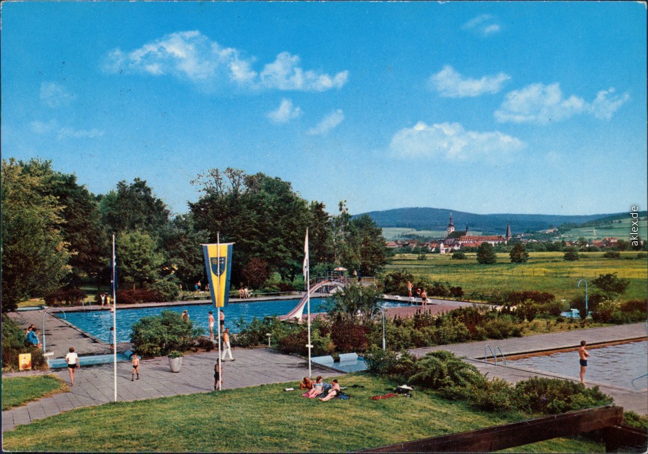 Postcart: Sole-Freibad und Franziskanerkloster - Bad Soden-Salmünster