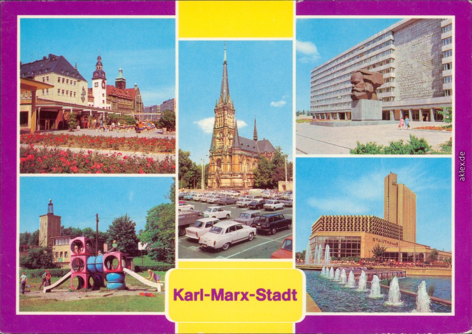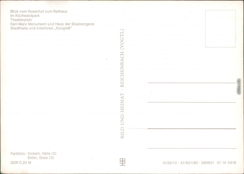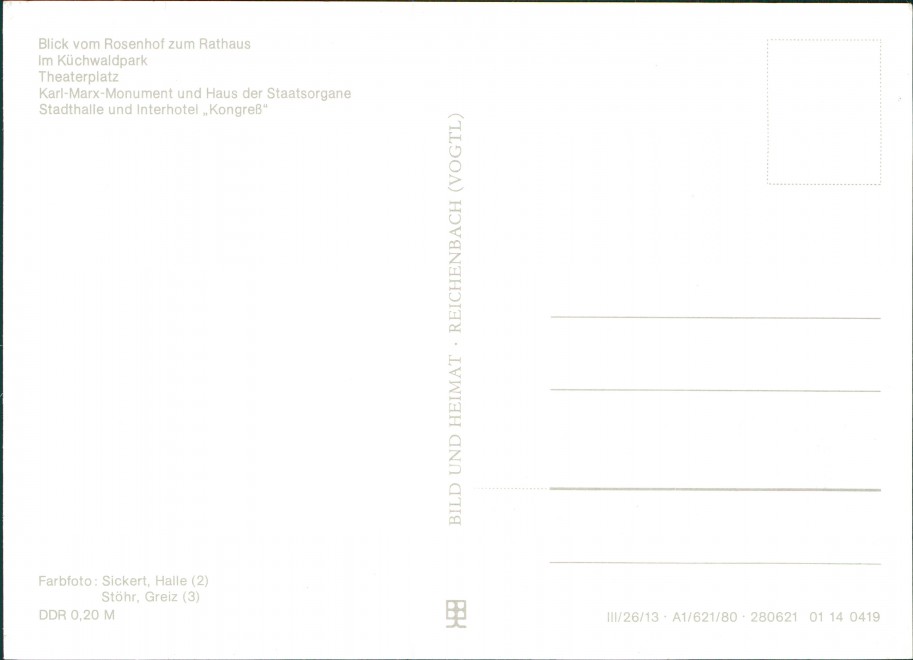 - Rathaus, Küchwaldpark, Theaterplatz, Monument und Haus der Staatsorgane, Stadthalle und Interhotel "Kongreß"