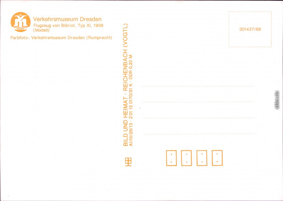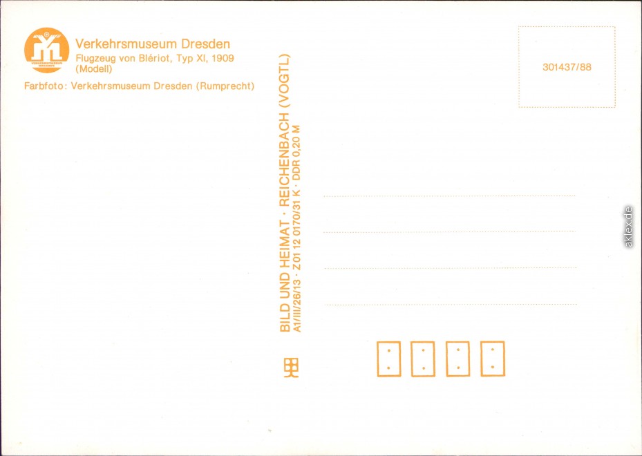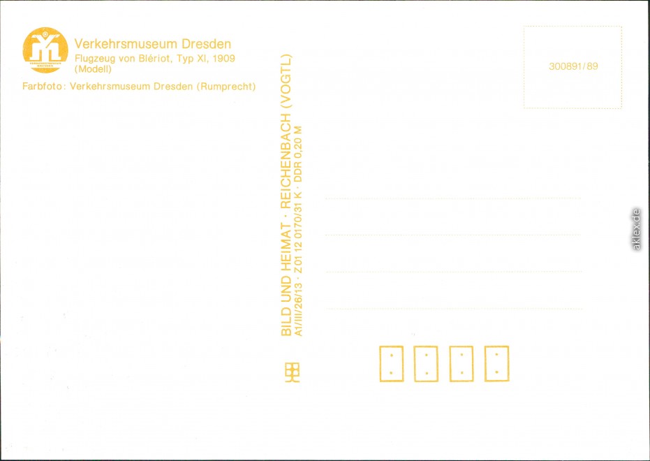 Postcart: Verkehrsmuseum Dresden: Flugzeug von Bieriot, Typ Xl, 1909, Modell - Dresden