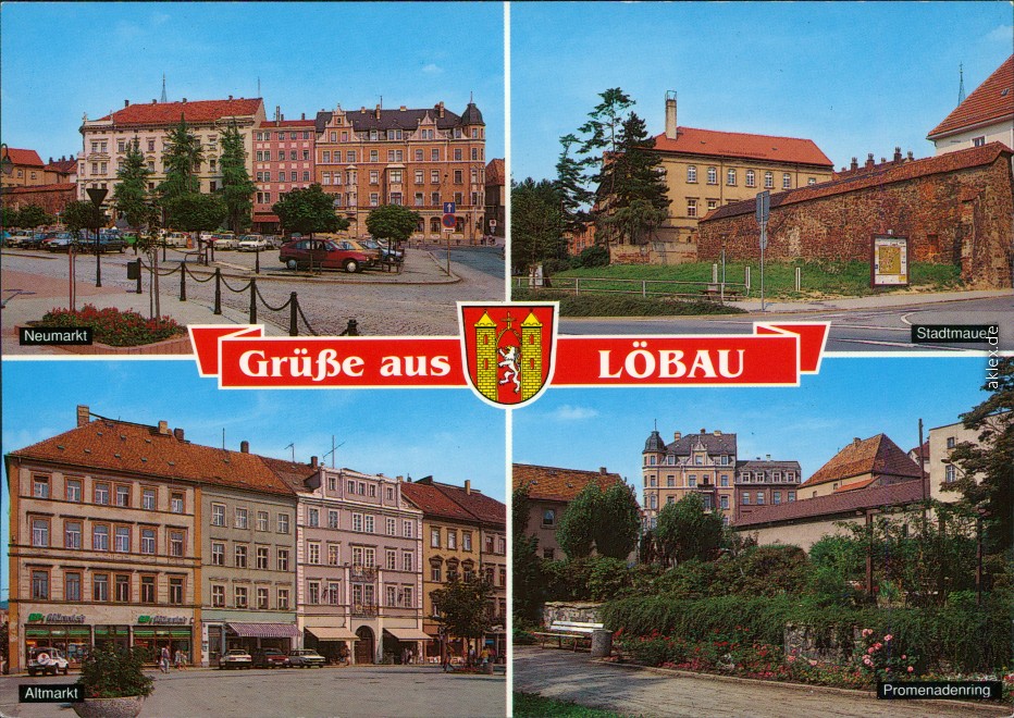 Postcart: Neumarkt, Altmarkt, Stadtmauer, Promenadenring - Löbau