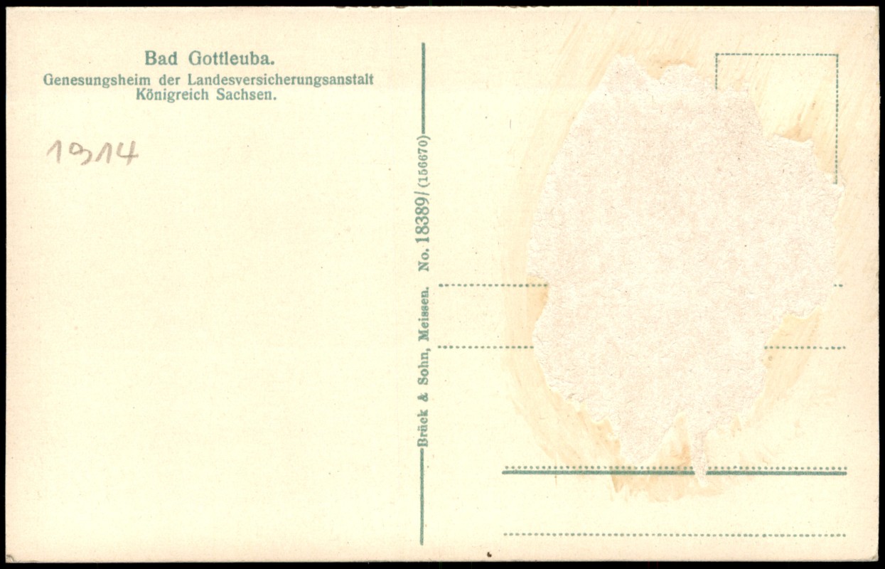 auf der Rückseite Kleberückstände und abgerissenes Papier