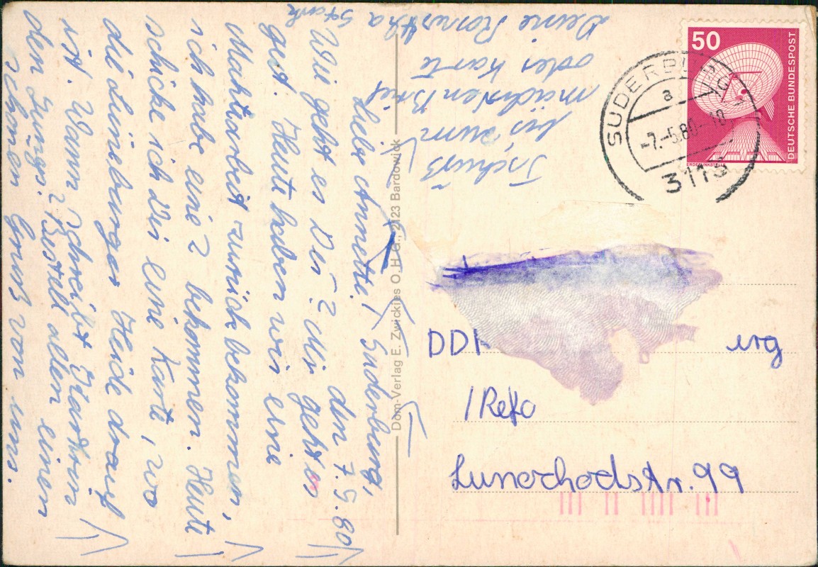 auf der Rückseite Kleberückstände und abgerissenes Papier