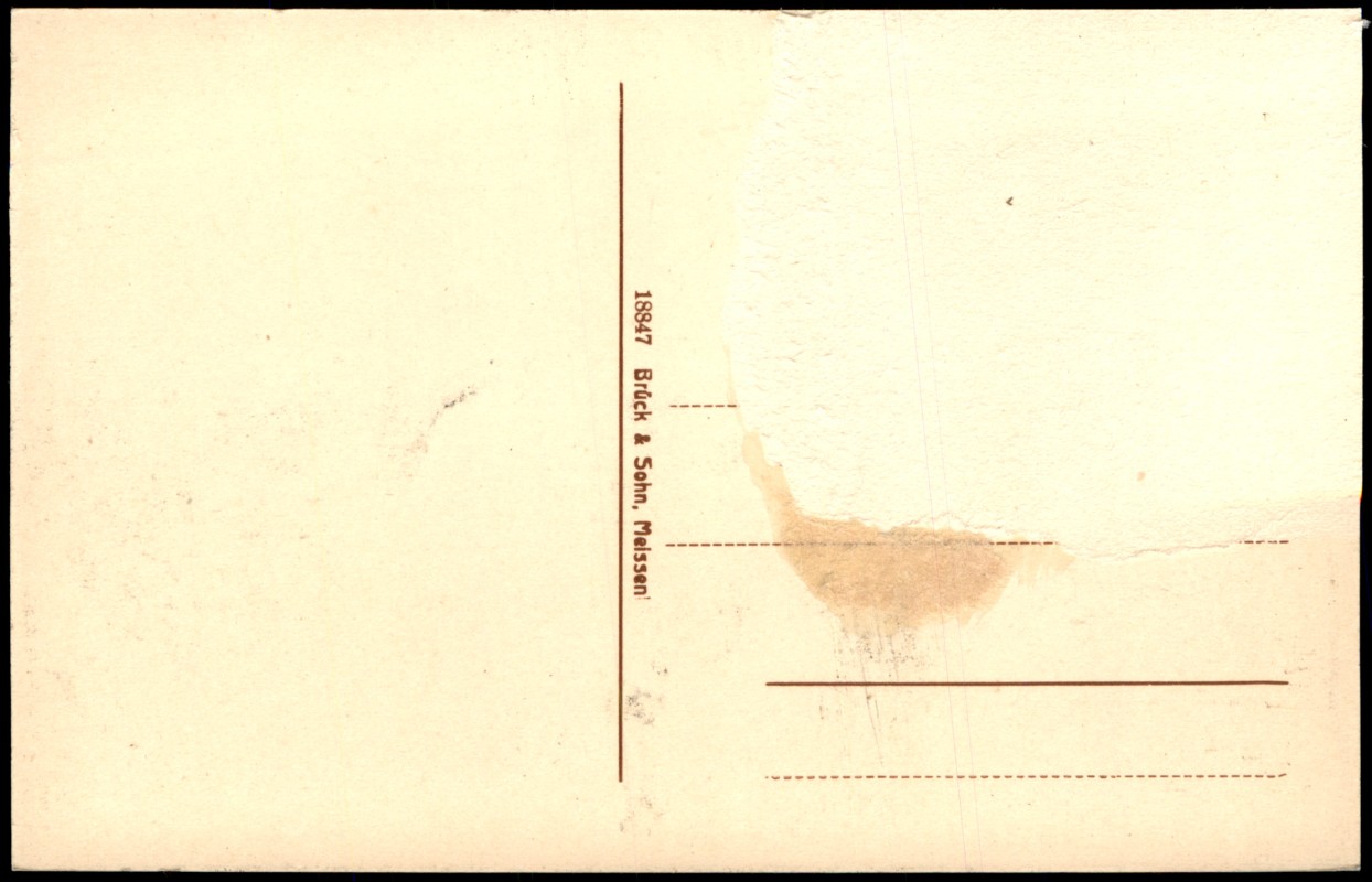 auf der Rückseite Kleberückstände und abgerissenes Papier