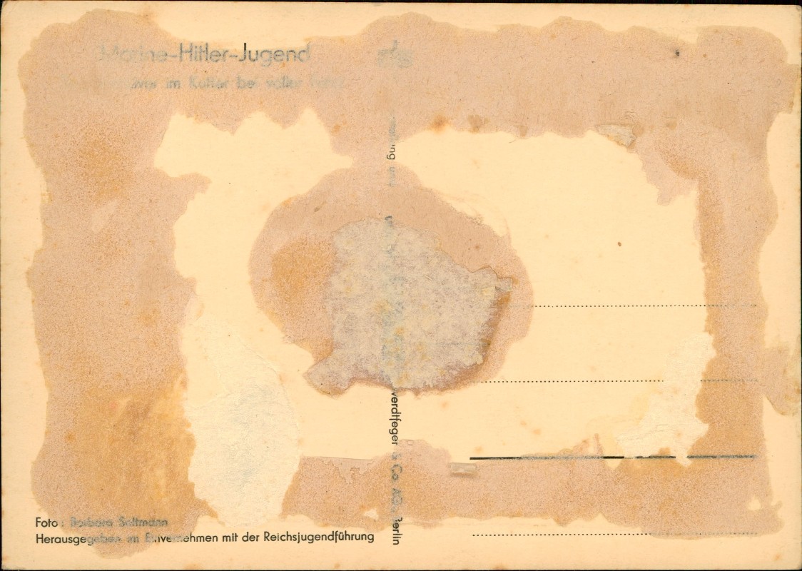 auf der Rückseite Kleberückstände und abgerissenes Papier