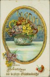 Glückwunsch Geburtstag Birthday Blumen in Vase Goldprägekarte