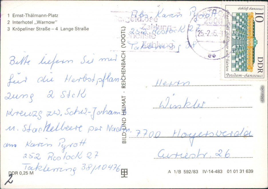 Postcart: Ernst-Thälmann-Platz, Interhotel Warnow, Kröpeliner Straße, Lange Straße - Rostock