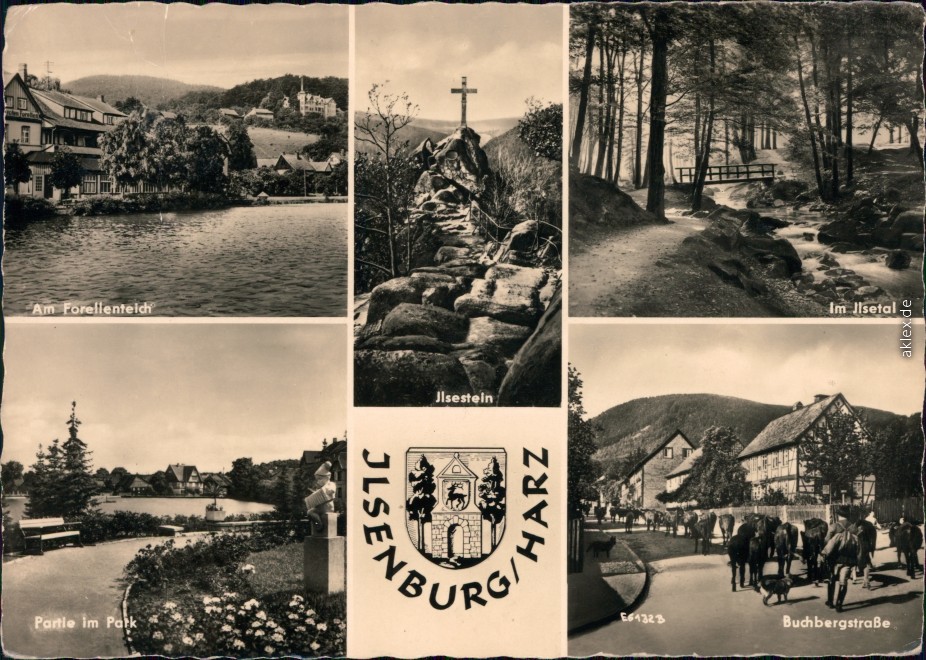 Postcart: Forellenteich, Ilsestein, Ilsetal, Park, Buchbergstraße - Ilsenburg (Harz)