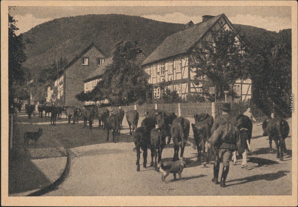 Postcart: Buchbergstraße mit Kuhherde - Ilsenburg (Harz)
