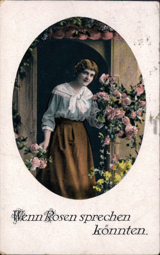 Postcart: Glückwunsch / Grusskarten: Allgemein - Frau mit Blumen