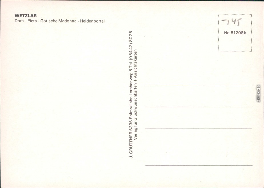 Postcart: Dom - Pieta - Got. Madonna - Heidenportal - Wetzlar