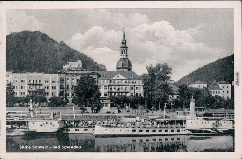 Postcart: Dampfer Riesa und Dampfer Leipzig vor der Stadt - Bad Schandau