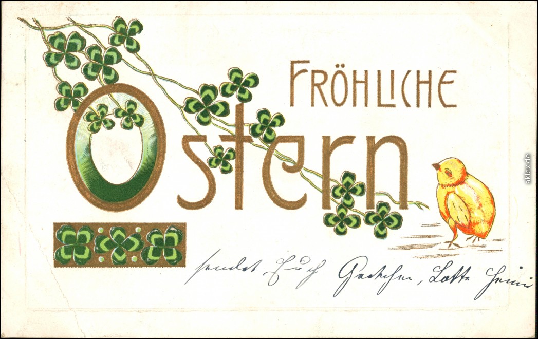 Ansichtskarte ArtDEKO Ostern Kleeblatt, Küken 1906 Prägekarte
