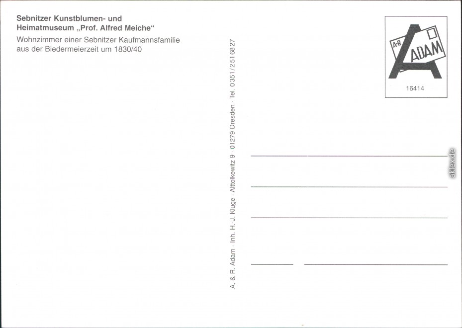 Postcart: Heimatmuseum - Wohnzimmer einer Kaufmannsfamilie - Sebnitz