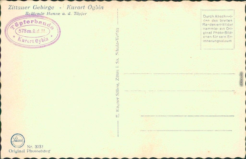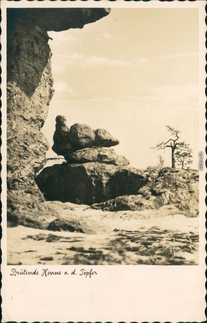 Postcart: Brütende Henne auf dem Töpfer (Berg) - Oybin