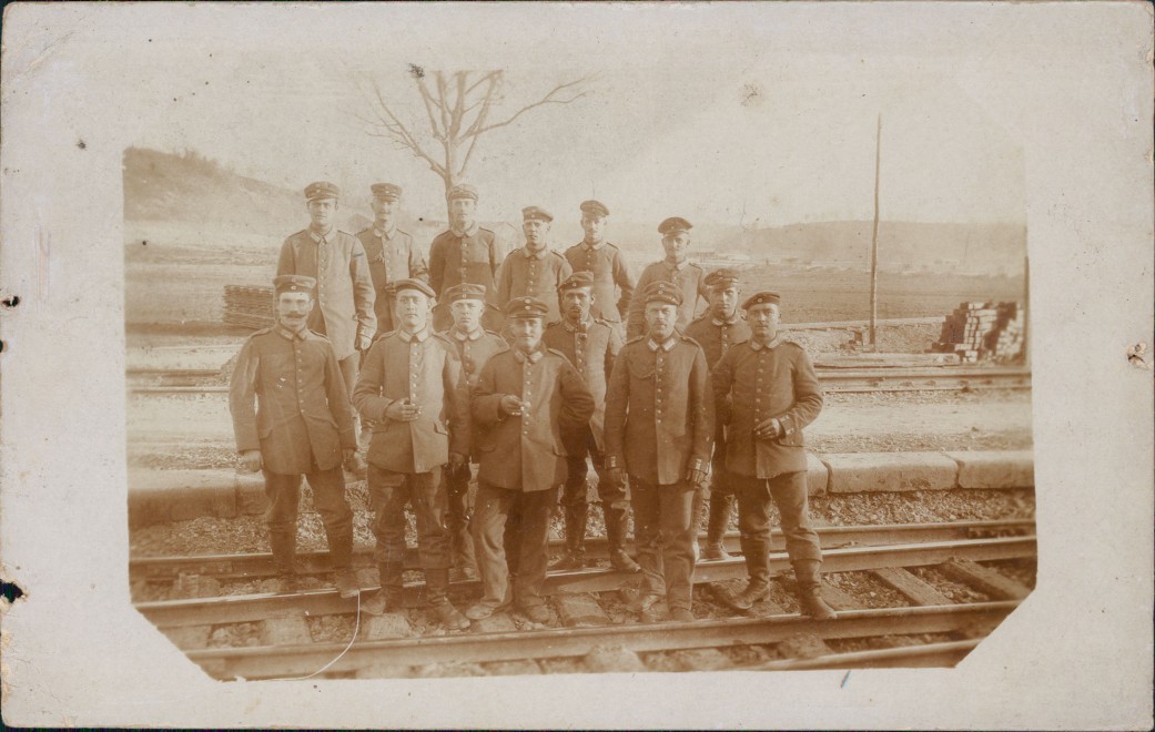 Soldatengruppenfoto auf den Schienen