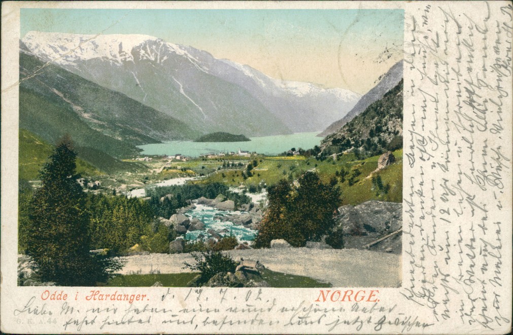 Postcart: Blick auf die Stadt - Odde i. Hardanger
