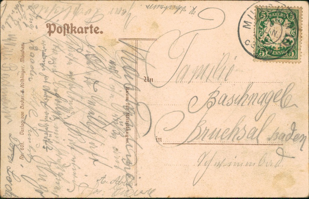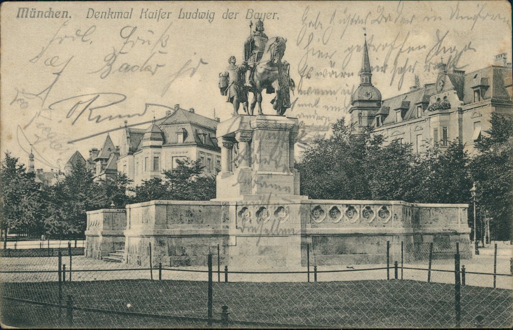Postcart: Straßenpartie - Denkmal Kaiser Ludwig der Bayer - Munich