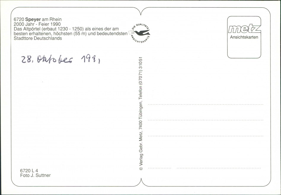 Postcart: Das Altpörtel (Stadttor) - Speyer
