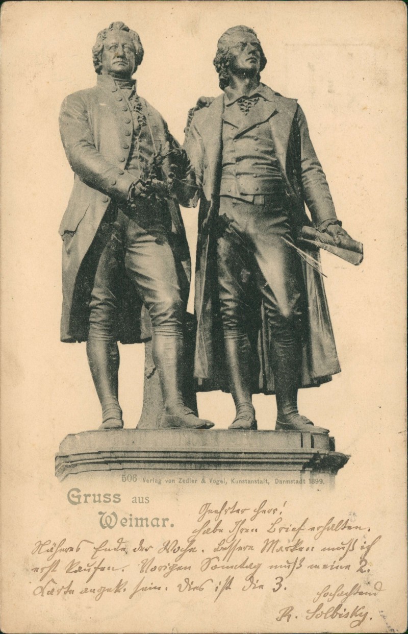 vintage Postcard from 1918: Goethe und Schillerdenkmal:: Weimar Address side Detail image Detail image