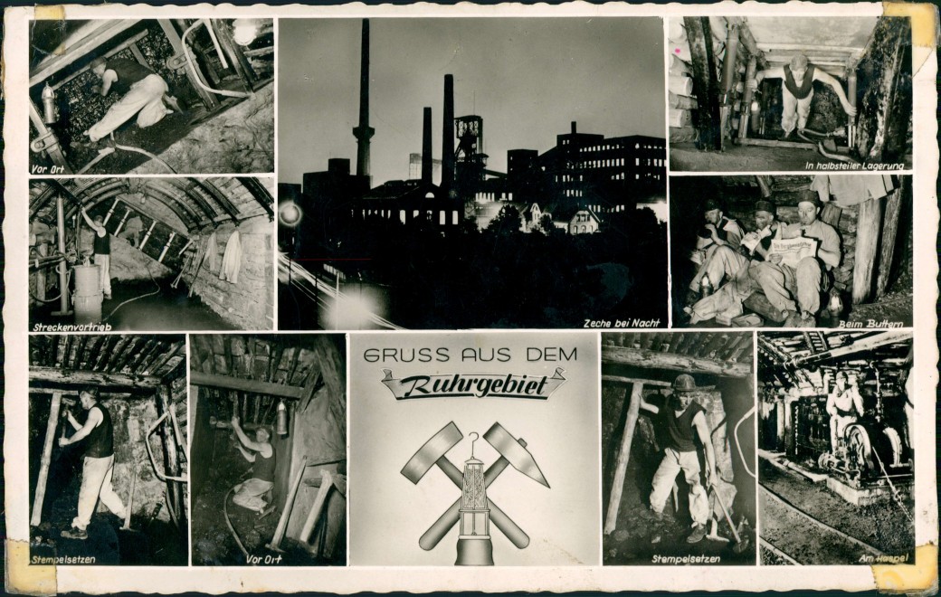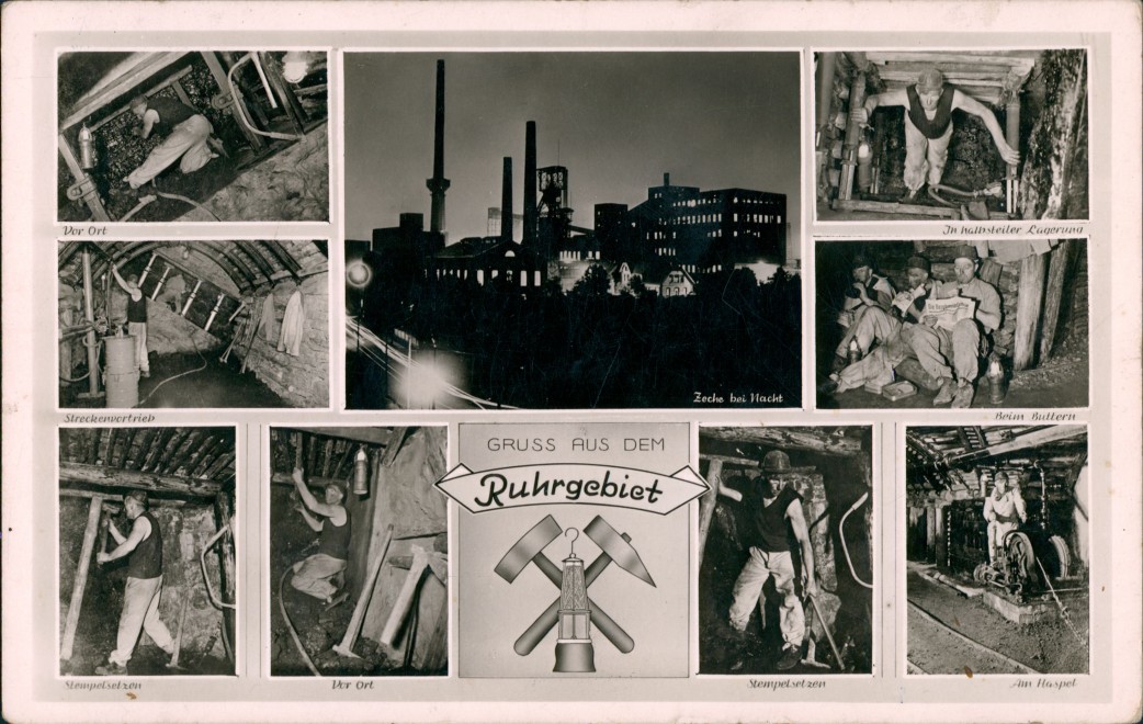 Ansichtskarte Gruss aus dem Ruhrgebiet Zeche, Kumpel, Bergbau 1958