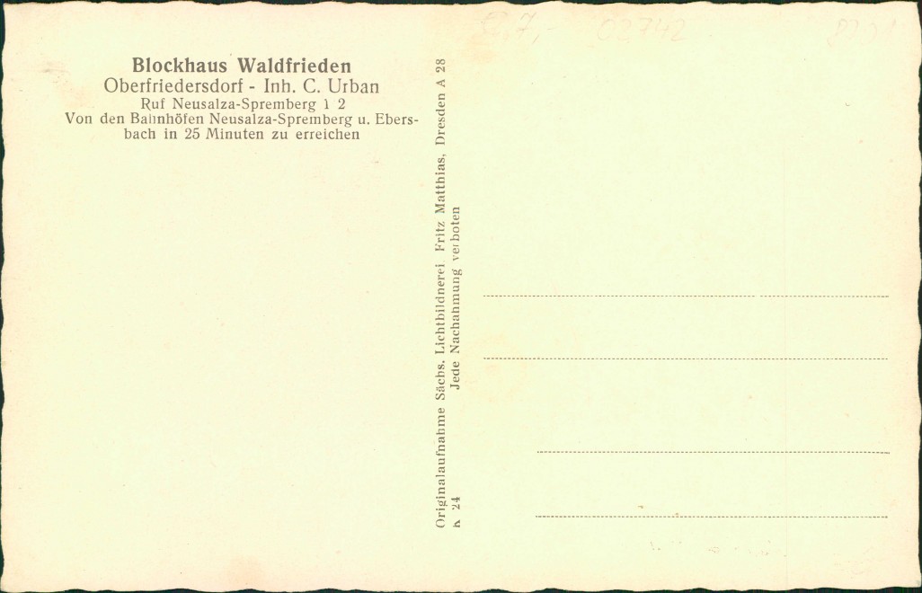 Postcart: Blockhaus Waldfrieden in Oberfriedersdorf - Friedersdorf-Neusalza-Spremberg