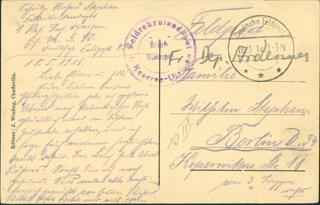 Postcart: Ansichten 1. Weltkrieg - Westfront - Rue Chanzy et l'Eglise