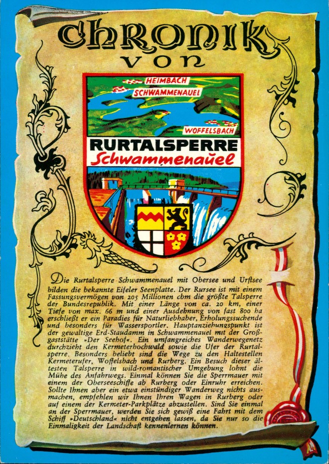 Postcart: Chronik von Rurtalsperre Schwammenauel - Schwammenauel-Heimbach