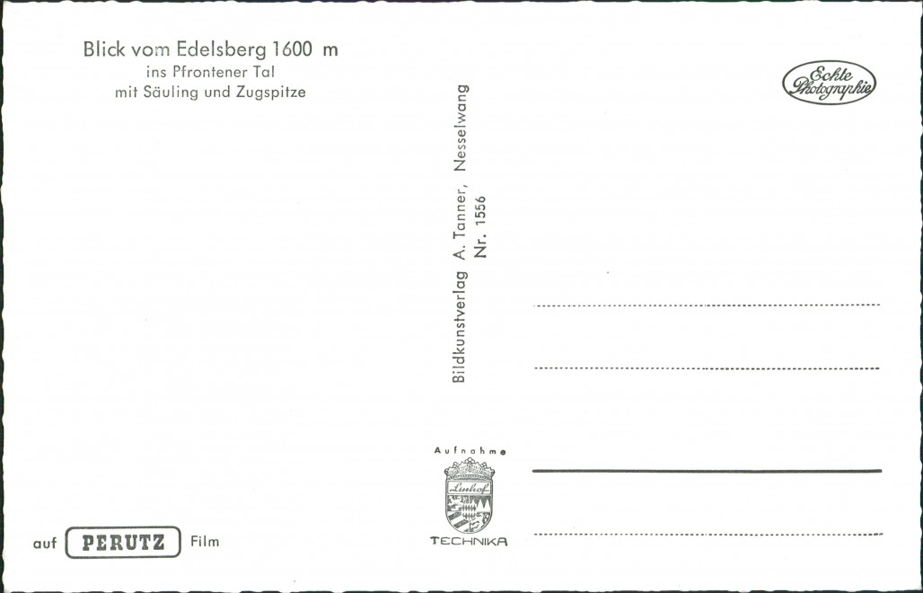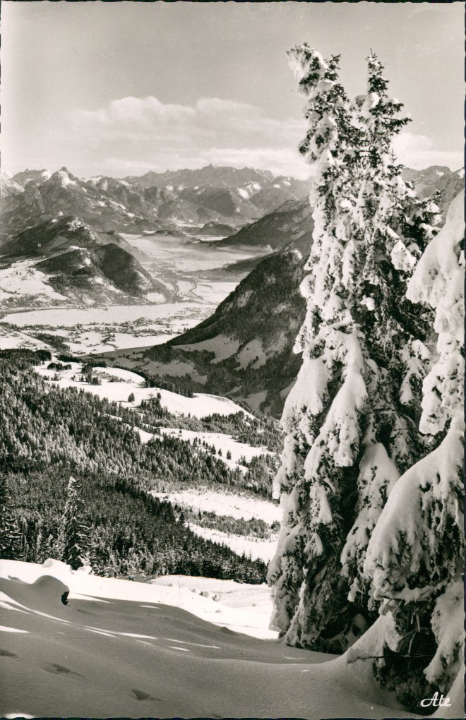 Postcart: Blick von Edelsberg 1600 m ins Pfrontener Tal mit Säuling und Zugspitze - Grainau