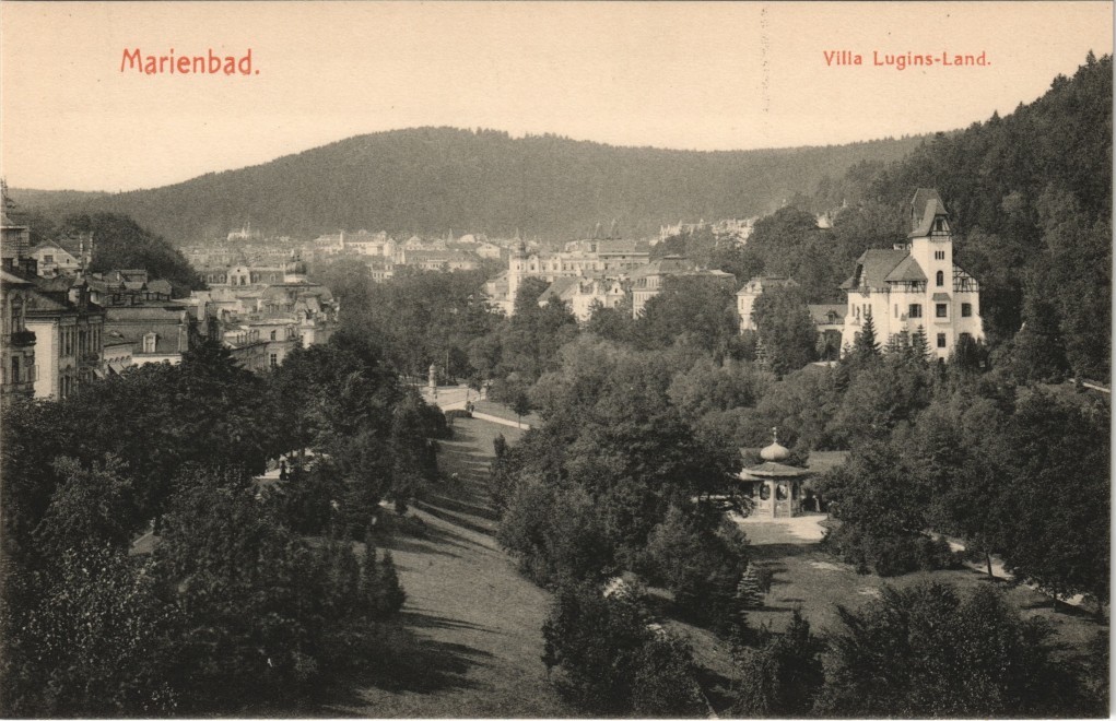 Postcart: Blick auf den Ort, Villa Lugins-Land - Mariánské Lázně
