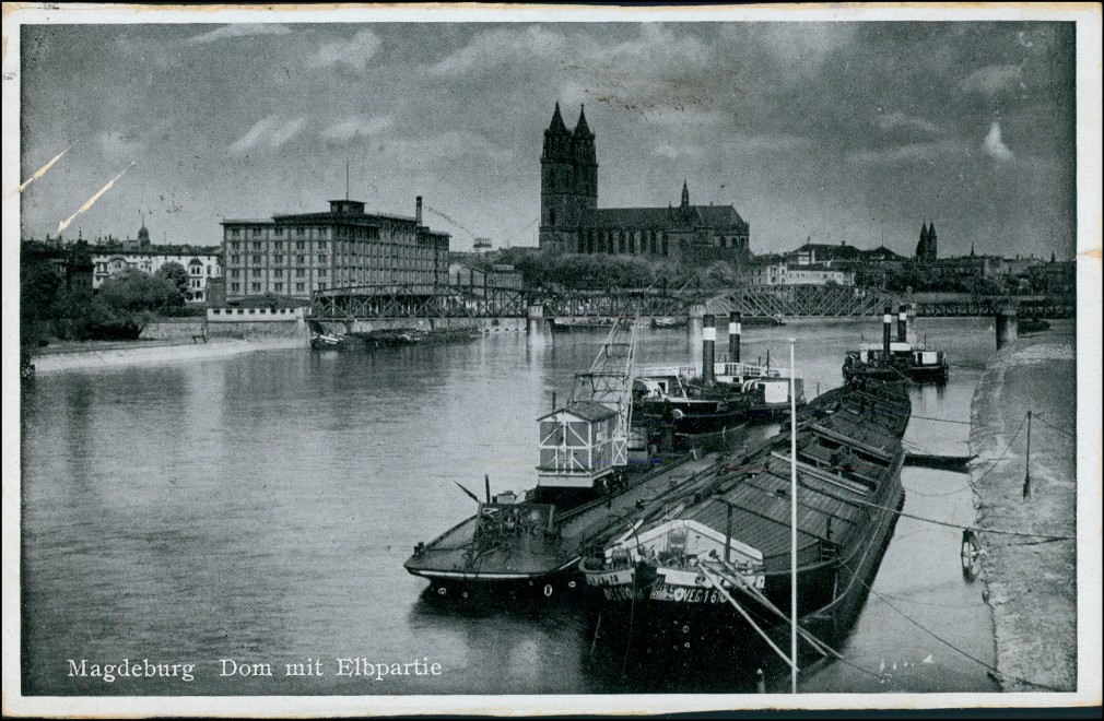 Postcart: Elbpartie bei Mondschein - Magdeburg