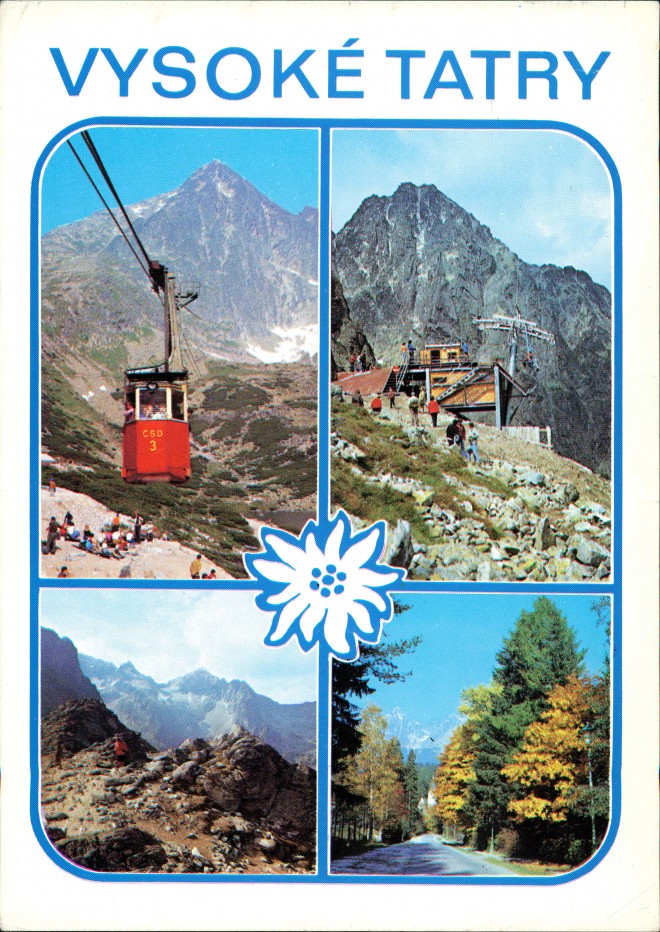 - Tatranský národný park - Vysoké Tatry X Skalnaté Pleso, v pozadí Lomnický štít (2632 m) * Horná stanica (2180 m) sedačkovej lanovky na Lomnickom sedle * Sedlo pod Svišťovkou (2020 m), Cierny (2434 m) a Kolový štít (2418 m) * Tatranská Lomnica (850 m), v pozadí Lomnický štít (2632 m) a Kežmarský štít (2558 m)