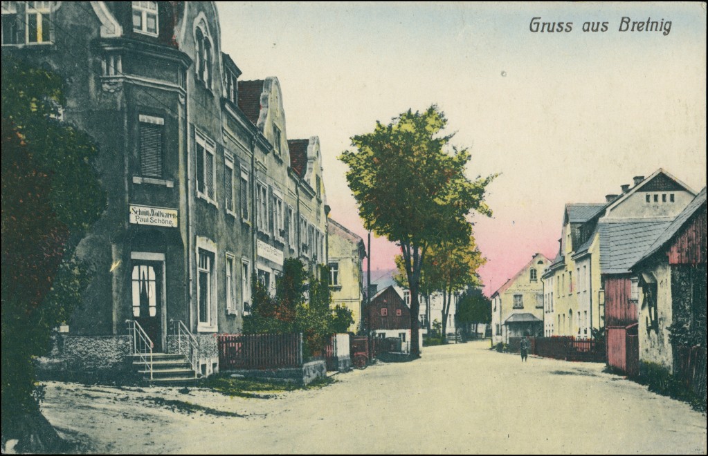 Postcart: Straße, Geschäft für Wollwaren - Bretnig-Hauswalde