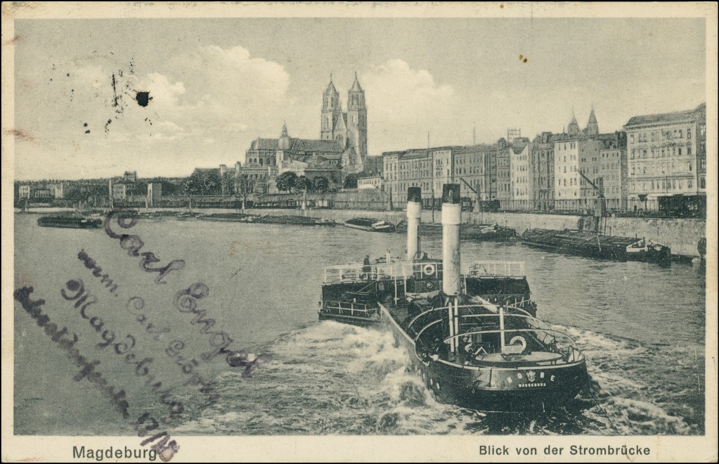 Postcart: von der Strombrücke aus - Dampfer - Magdeburg