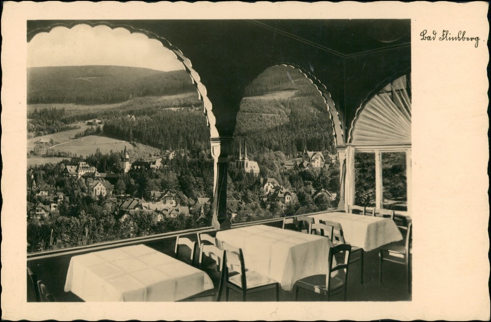 Postcart: Stadt von der Terrasse Waldfrieden - Swieradów Zdrój