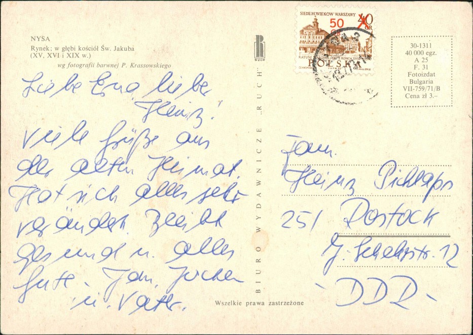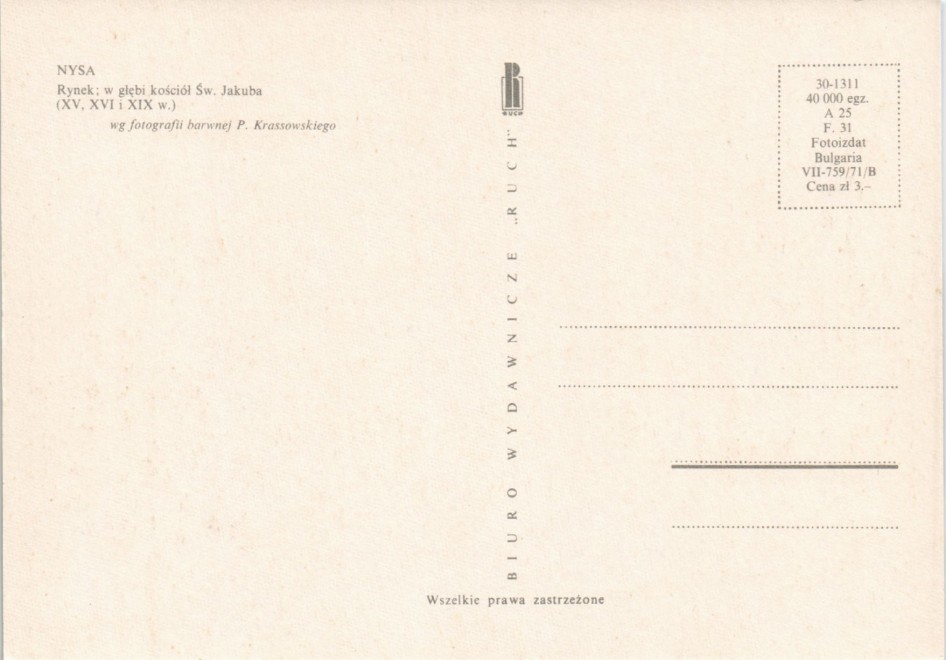 Postcart: Rynek; w głębi kościół Św. Jakuba - Nysa
