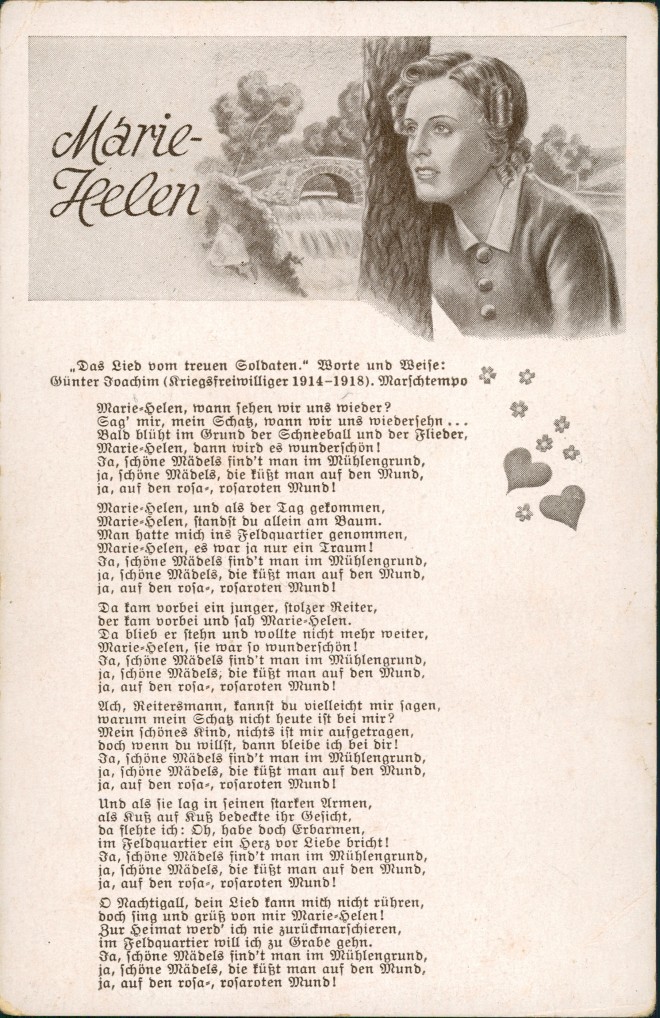 - Liedkarte "Marie-Helen" Lied vom treuen Soldaten, Marschlied