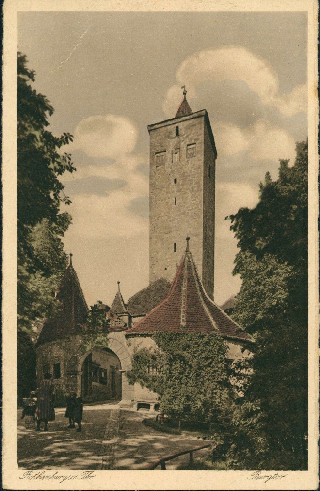 Photo Card: Partie am Burgtor Frau Kinder davor - Rothenburg ob der Tauber